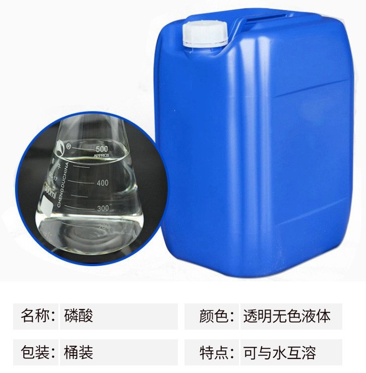 熔點(diǎn)42.35℃,比重1.70,高沸點(diǎn)酸,可與水以任意比互溶,沸點(diǎn)213℃時(shí)(失去1/2水),則生成焦磷酸。加熱至300℃時(shí)變成偏磷酸。相對(duì)密Chemicalbook度181.834。易溶于水,溶于乙醇。磷酸是一種常見的無機(jī)酸,是中強(qiáng)酸。其酸性較硫酸、鹽酸和硝酸等強(qiáng)酸弱,但較醋酸、硼酸、碳酸等弱酸強(qiáng)。磷酸與碳酸鈉反應(yīng)時(shí)在不同的pH下,可生成不同的酸式鹽。能刺激皮膚引起發(fā)炎,破壞肌體組織。濃磷酸在瓷器中加熱時(shí)有侵蝕作用。有吸濕性,密封保存。磷酸主要應(yīng)用領(lǐng)域如下:金屬表面鋼管磷化處理,配制電解拋光液和化學(xué)拋光液;鋁制品的拋光;制造各種磷酸鹽、飼料級(jí)磷酸氫鈣、酸式磷酸錳、焦磷酸鉀;醫(yī)藥工業(yè)用于制造甘油磷酸鈉、磷酸鐵,制造青霉素時(shí)調(diào)節(jié)酸堿度;用于制造磷酸鋅作為牙科補(bǔ)牙時(shí)粘合劑;塑料用于酚醛樹脂縮合的催化劑Chemicalbook;染料及中間體生產(chǎn)用的干燥劑;印刷用于配制揩去膠印彩印版上污點(diǎn)的清洗劑;火柴用于浸漬火柴梗,能使燃燒過的火柴梗不成灰而成炭狀,使用時(shí)較為安全;冶金用于生產(chǎn)耐火泥,提高煉鋼爐壽命;橡膠用于漿料的凝固劑及生產(chǎn)無機(jī)粘結(jié)劑的原料;涂料用于金屬防銹漆;食品工業(yè)用作酸性調(diào)味劑。