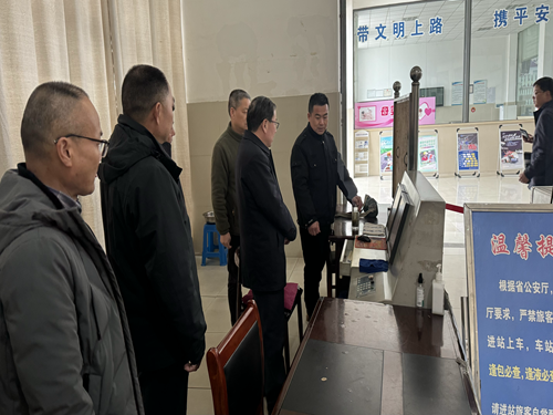 1月29日下午,省交通運輸廳總工程師晏少鶴一行來池州汽車客運總站檢查指導2024年春運安全生產工作。市交通運輸局局長毛萬青、市運管服務中心主任汪國忠、集團公司總經理凌愛武等陪同檢查。